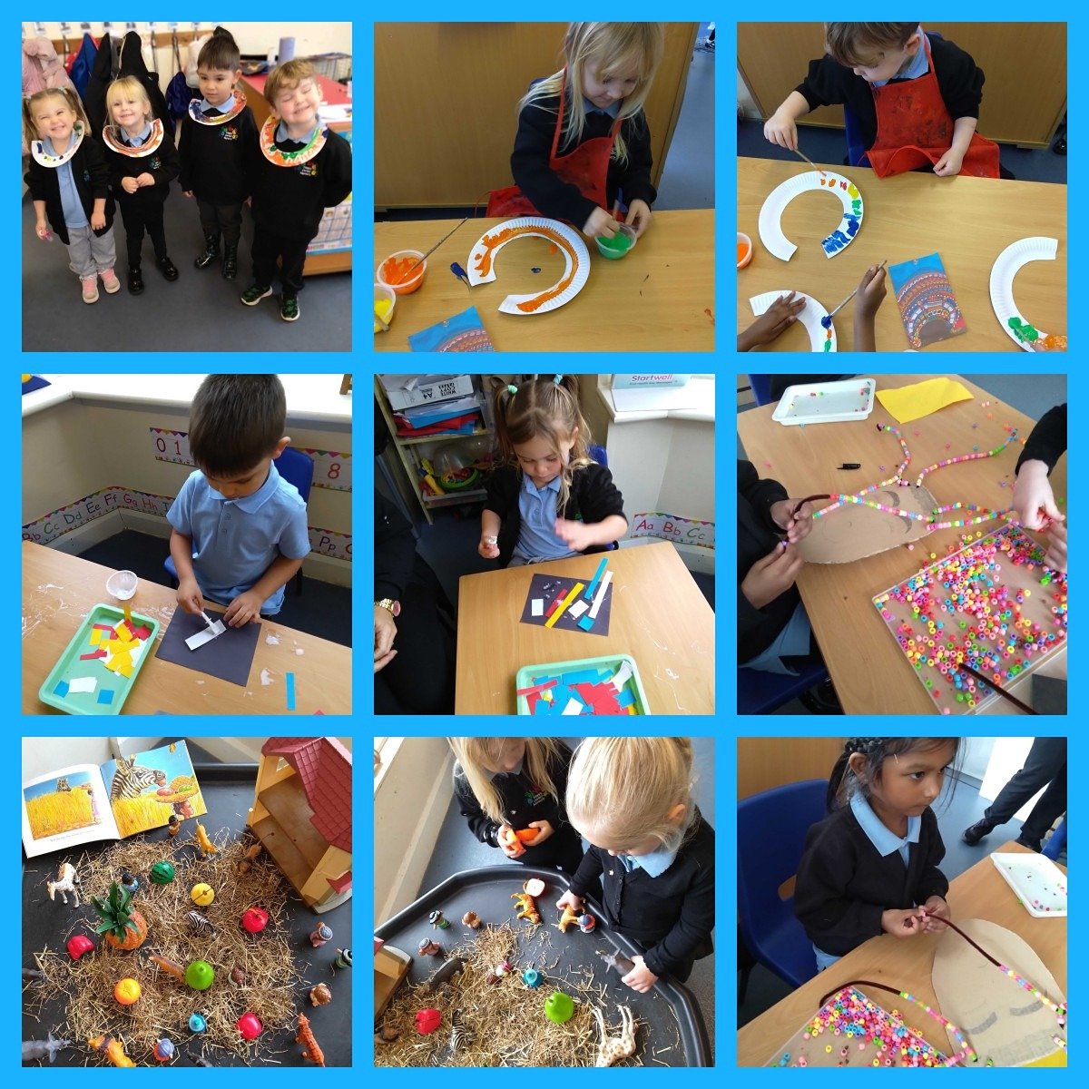 Literacy - reading Handa’s Surprise by Eileen Browne, the picture book is named one of the best culturally diverse in the UK. It is the story of Handa, who is part of the Luo tribe in South-West Kenya. The children watched the film and acted out the story line by using props and costumes.