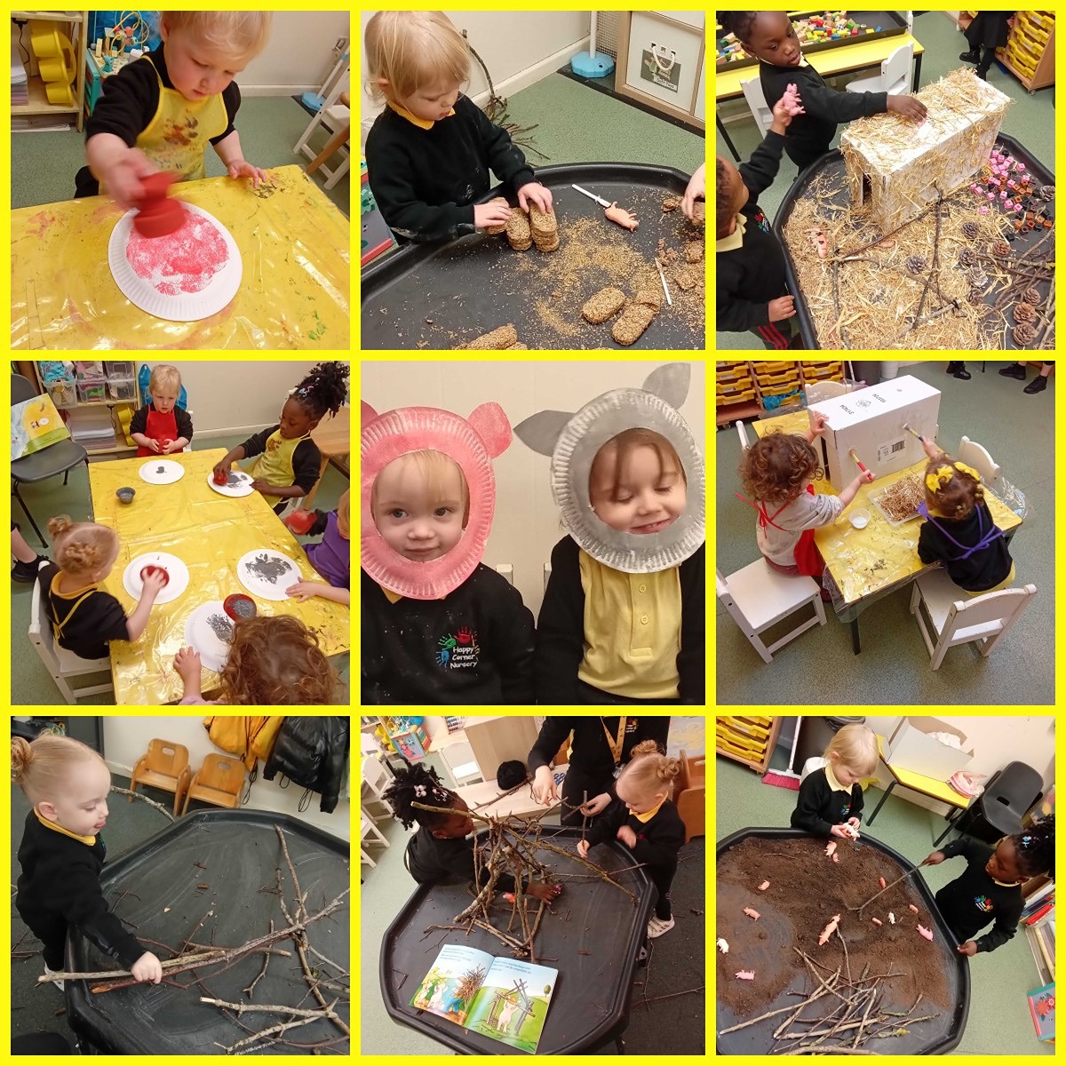 Literacy - Extending word knowledge when looking at the environment and exploring the Three Little Pigs Book.